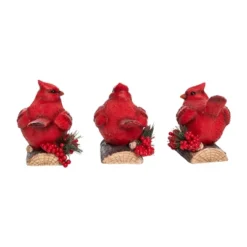 Transpac Set Of 3 Holiday Cardinal Figurines Christmas Home Decorations Resin Decorative Objects